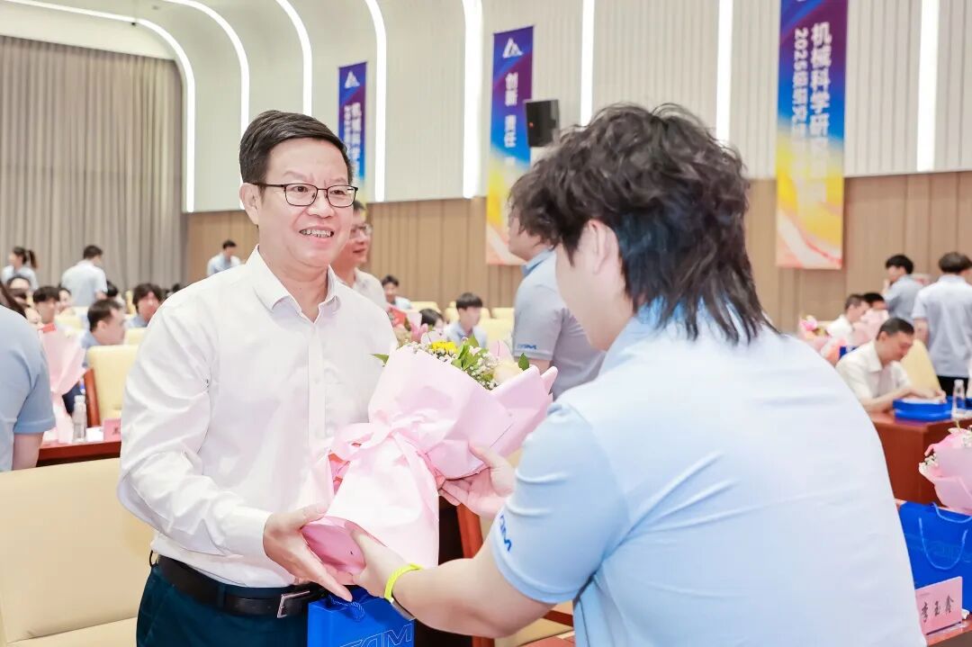 典禮上,王德成、李玉鑫及導師代表共同為新生佩戴總院徽章。這枚徽章不僅象征著中國機械總院人的身份,更承載著“以提升中國裝備制造水平為己任”的使命與榮光。優秀導師獎、最受歡迎教師獎、新生入學獎學金和優秀課程獎獲獎代表上臺領獎。新生代表手捧鮮花向導師們獻上誠摯敬意與節日祝福,表達莘莘學子的感激之情。